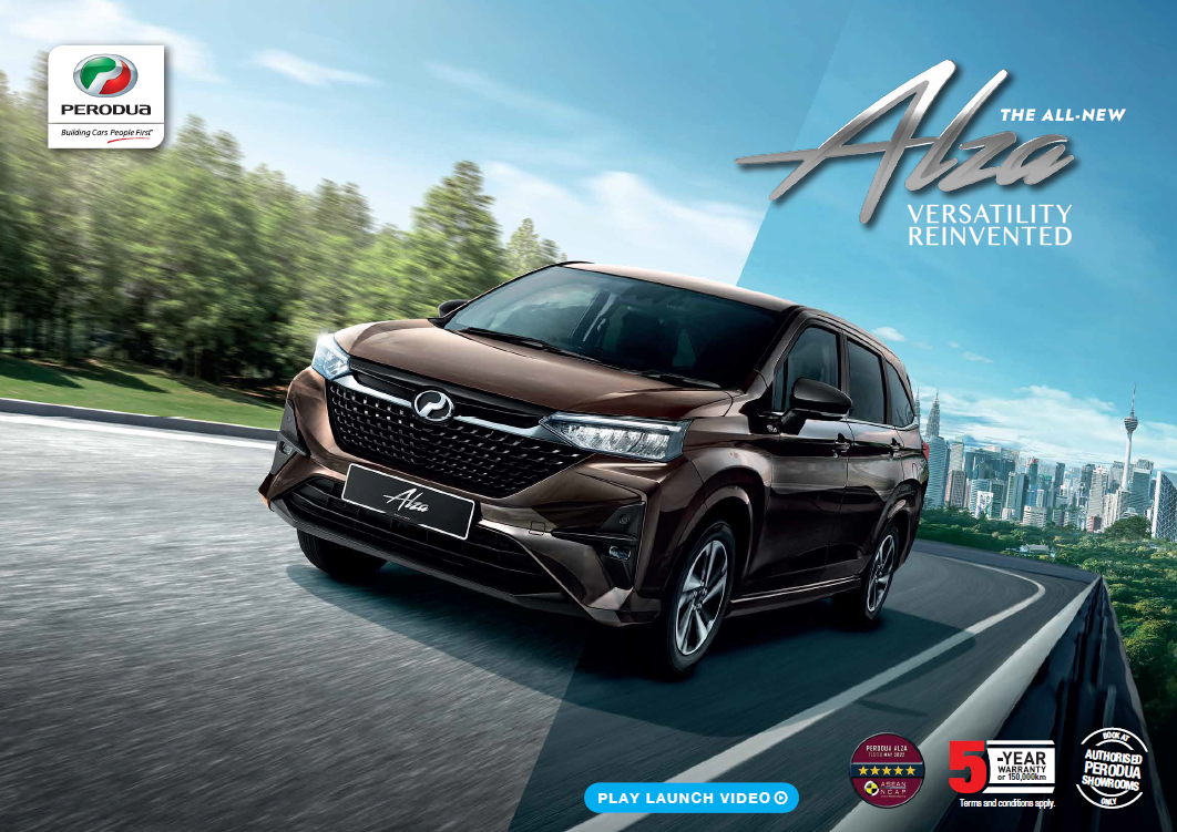 Perodua Alza – MPV Moden, Luas & Selesa Perodua Alza baharu direka untuk gaya hidup keluarga moden. Dengan ruang dalaman yang luas, teknologi terkini dan ciri keselamatan canggih, Alza sesuai untuk perjalanan harian mahupun percutian bersama keluarga.